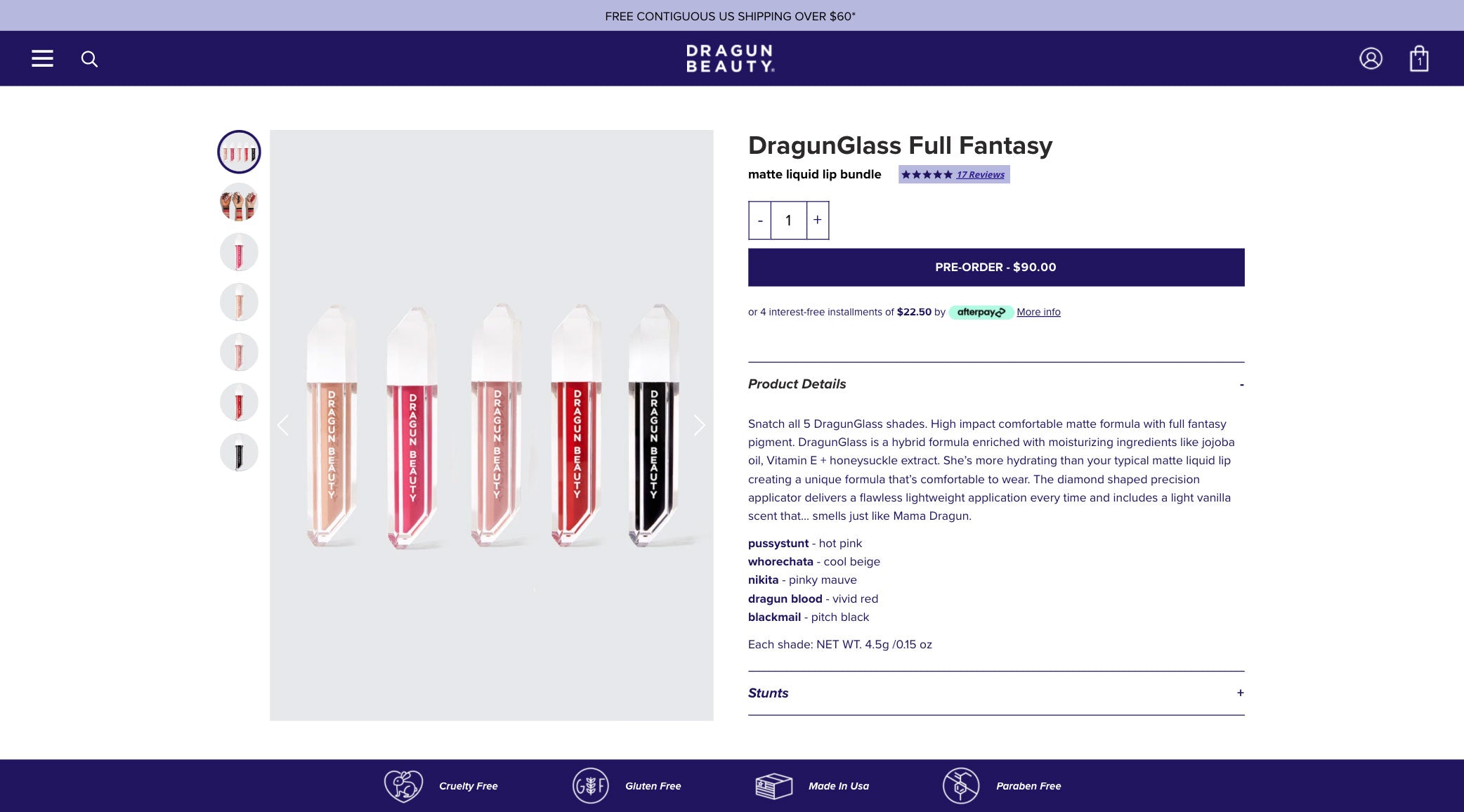 The level of customization in Dragun Beauty’s previous theme was lacking. A solution that would give them more control at the product level, as well as the different color variants, was needed.